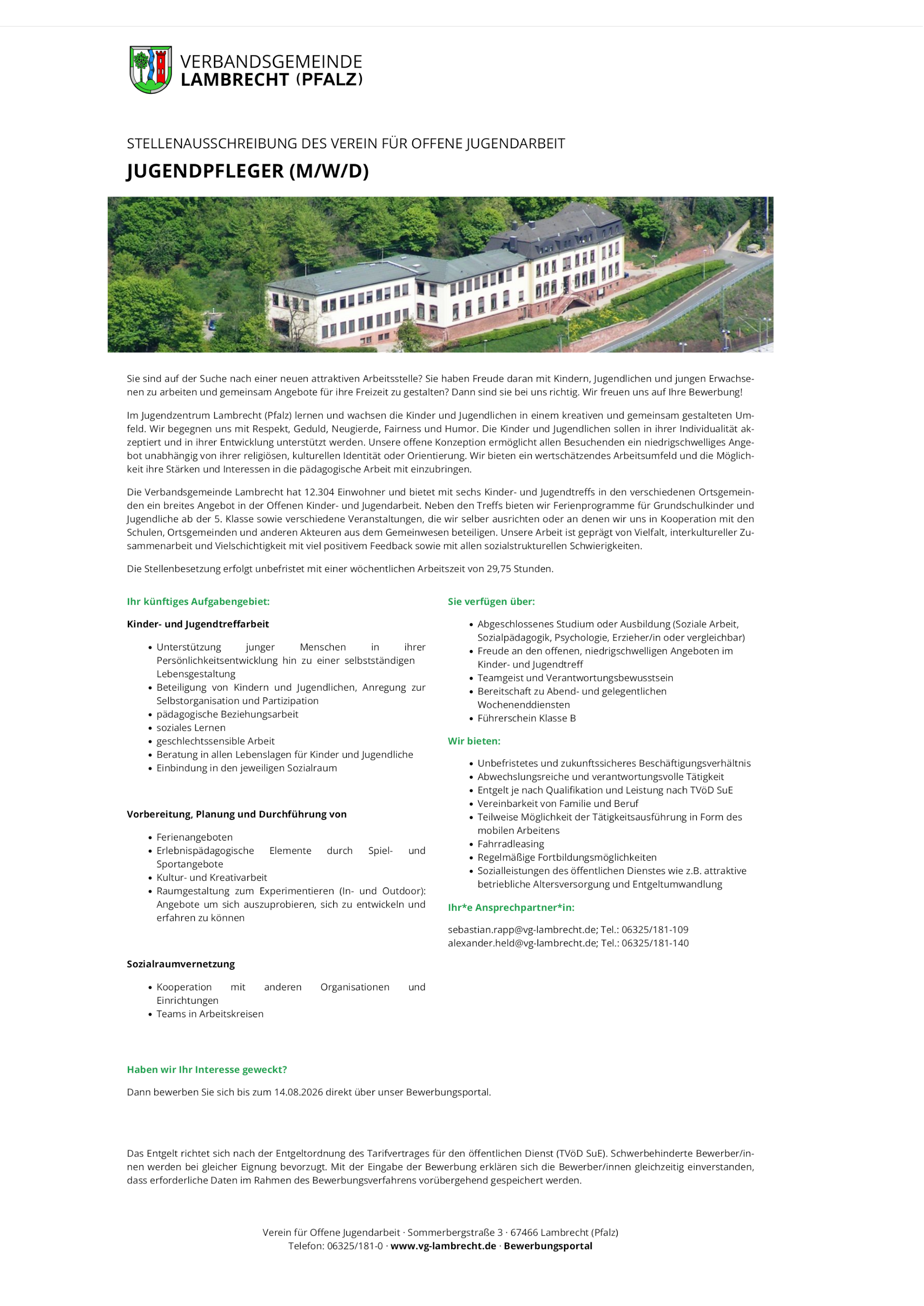 Aktuelle Infos, z.B. zu den Juz-Ferienprogrammen 2021 auf unserer Homepage „juz-lambrecht.de“